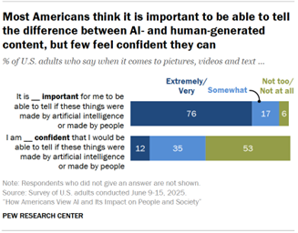 The Impact of AI: AI is changing both newsroom workflows and audience expectations, making disclosure and human oversight central to maintaining local trust. Pew reports 76% of Americans say it’s important to distinguish AI-generated from human-created content, yet 53% are not confident they can do it. Recent research by Local Media Association also found that 98.8% of respondents want a human involved in a newsroom’s use of AI before content is published, and 97.8% want to know if AI was used. Additionally, another survey conducted by OnMessage reported that 76% are concerned about AI stealing or reproducing journalism and local news stories and only 26% trust information produced by AI, while 68% say it is not trustworthy. Understanding this sentiment points to local media more increasingly needing to rely on clear standards, transparency and human oversight to protect the credibility local communities depend on and expect.